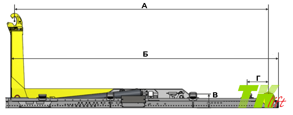 | Расстояние гидравлических замков кузова (Г) | 920 мм | |